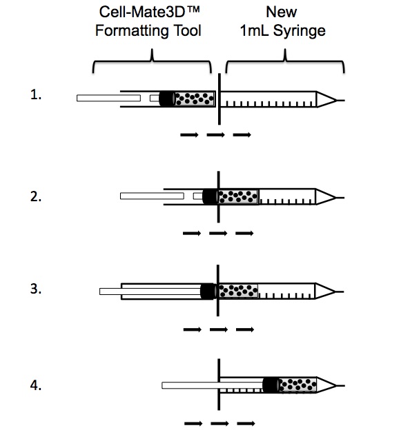 2. Push the gel into the syringe using the long plunger that is supplied with the Cell-Mate3D™ kit. Push the gel in only to the point where the gel has just fully entered the syringe.